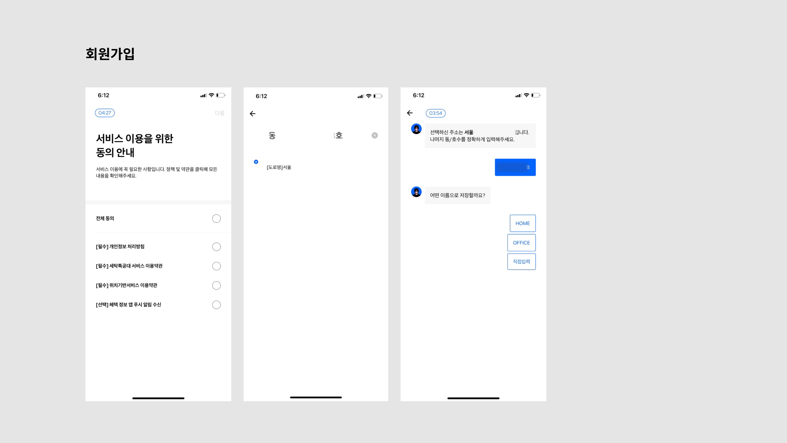 모바일 세탁 서비스이기 때문에 주소가 중요하고, 꼭 필요한만큼 주소 위주로 회원가입과 로그인이 이루어지는 듯합니다.