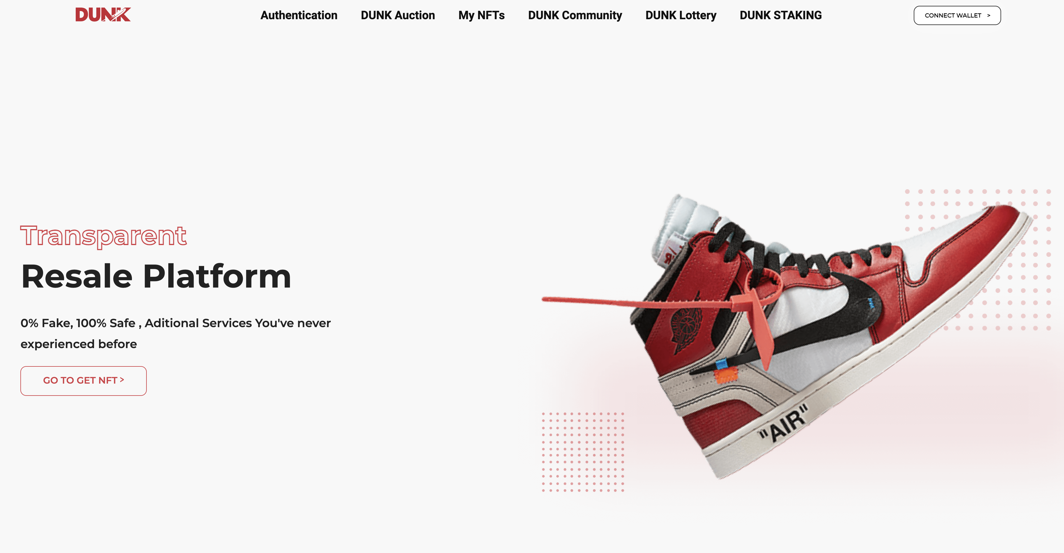 https://dunk.exchange/ 캡쳐 국내 패션분야에서는 한정판 스니커즈 시장에서도 NFT가 활용되고 있습니다. 국내 스니커즈 리셀 플랫폼 ‘덩크’는 패션 NFT를 기반으로 확장했습니다. 덩크 옥션에는 가상화폐인 이더리움을 통해 덩크에 등록된 NFT 한정판 스니커즈 거래를 유저에게 제공합니다. 구매자는 이더리움을 통해 입찰을 등록하고 상품 판매자가 이를 승인하면 구매자의 이더리움은 판매자가 소유할 수 있습니다. NFT 기술을 통해 가품 문제를 해결할 수 있게 되었습니다.