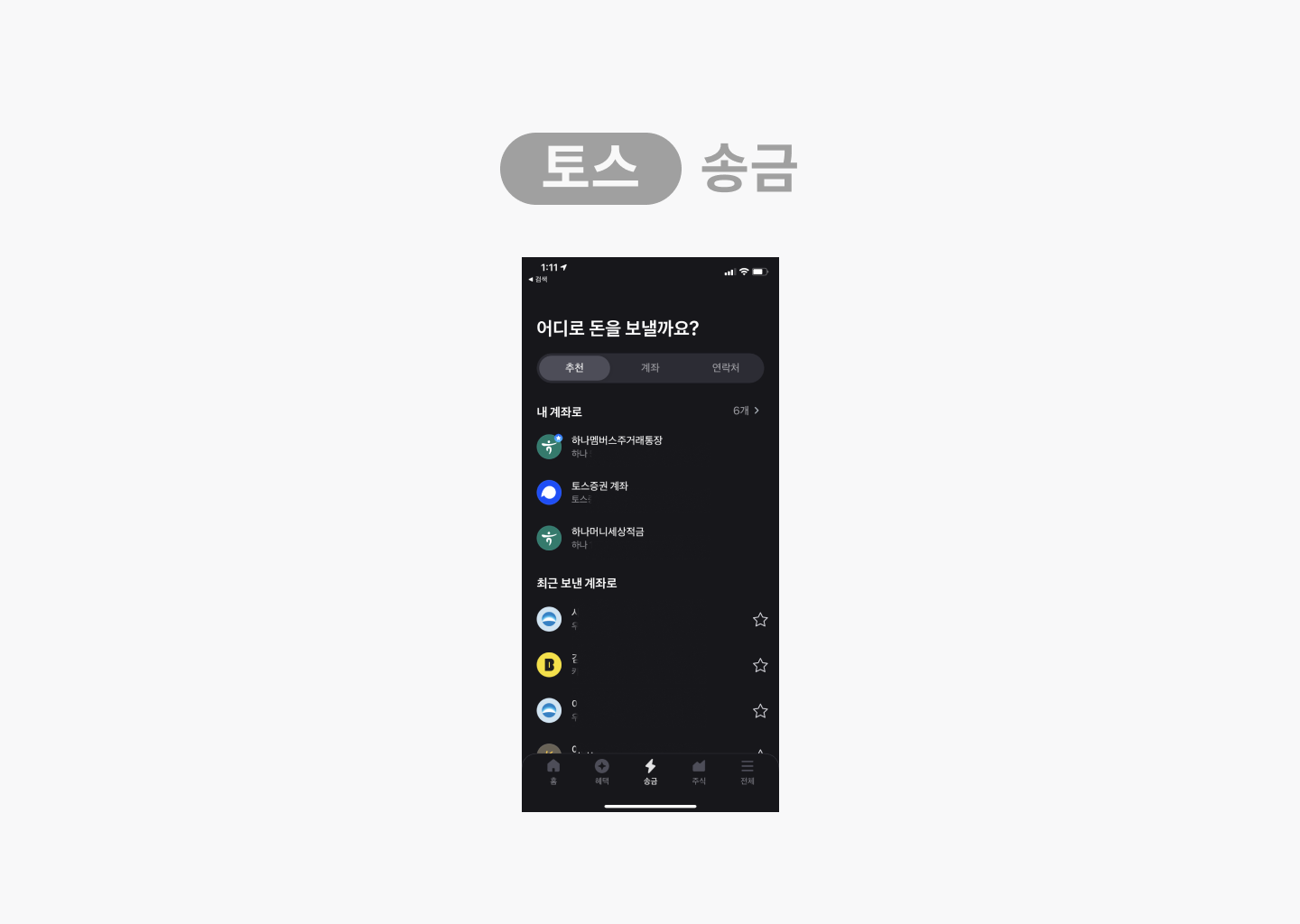 토스는 송금에 최적화되어있는 UX/UI가 아주 편리합니다.