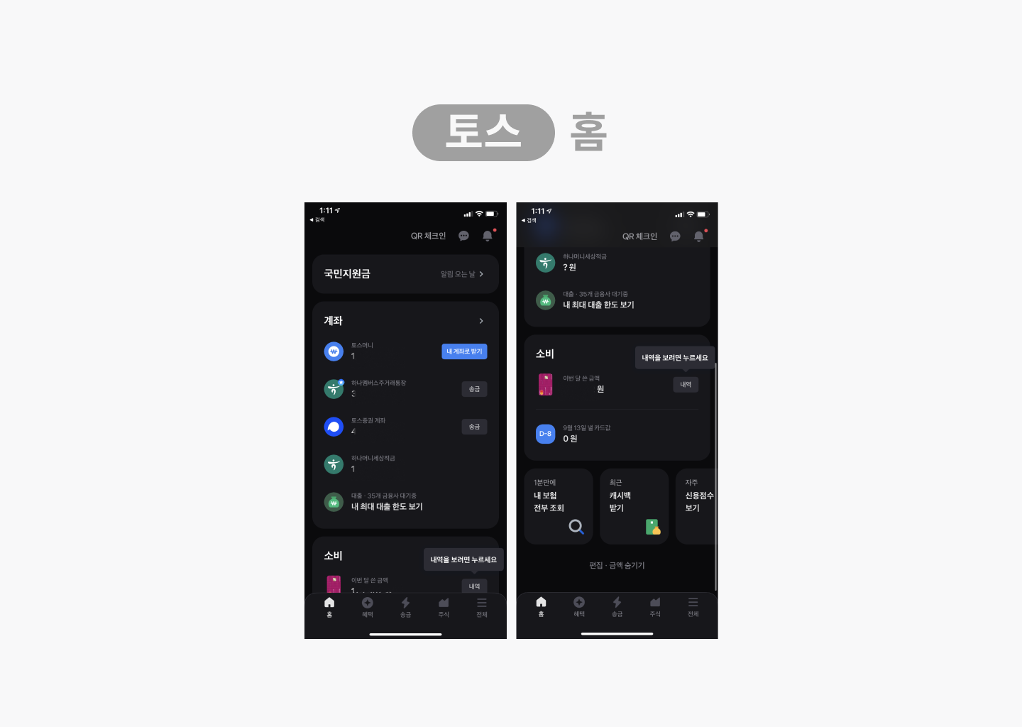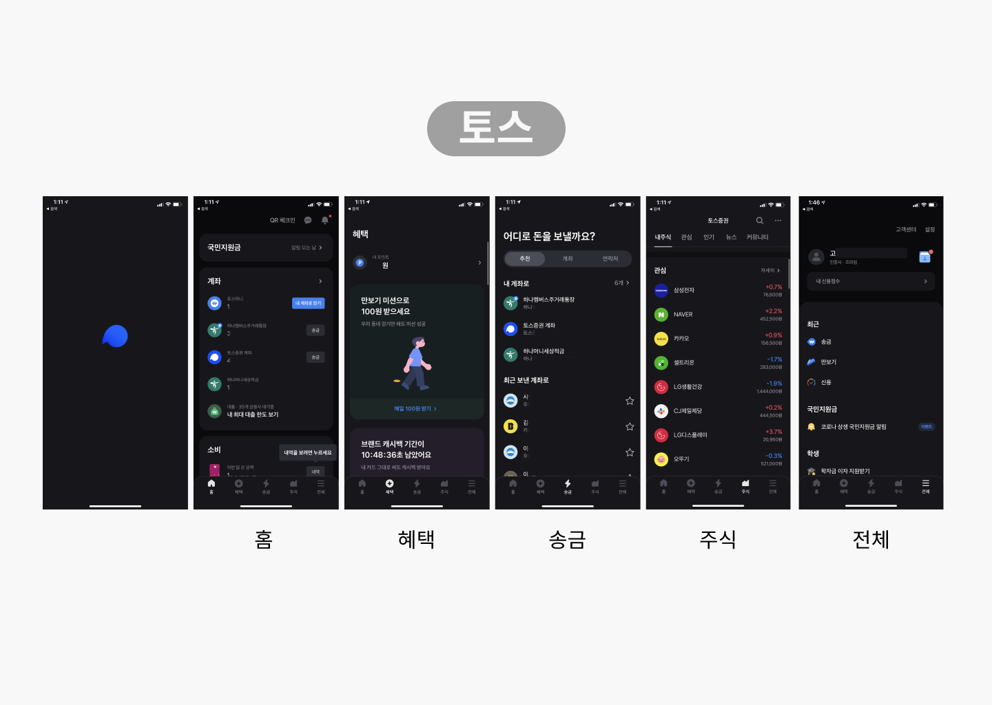 토스 모바일 앱 캡쳐화면 [홈기능]