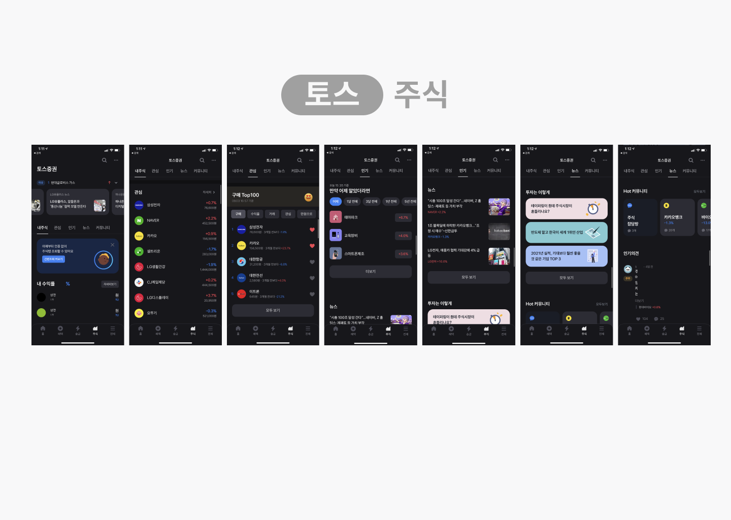 토스 모바일 앱 캡쳐화면 [주식] 하단탭의 4번째, 주식 기능입니다.
