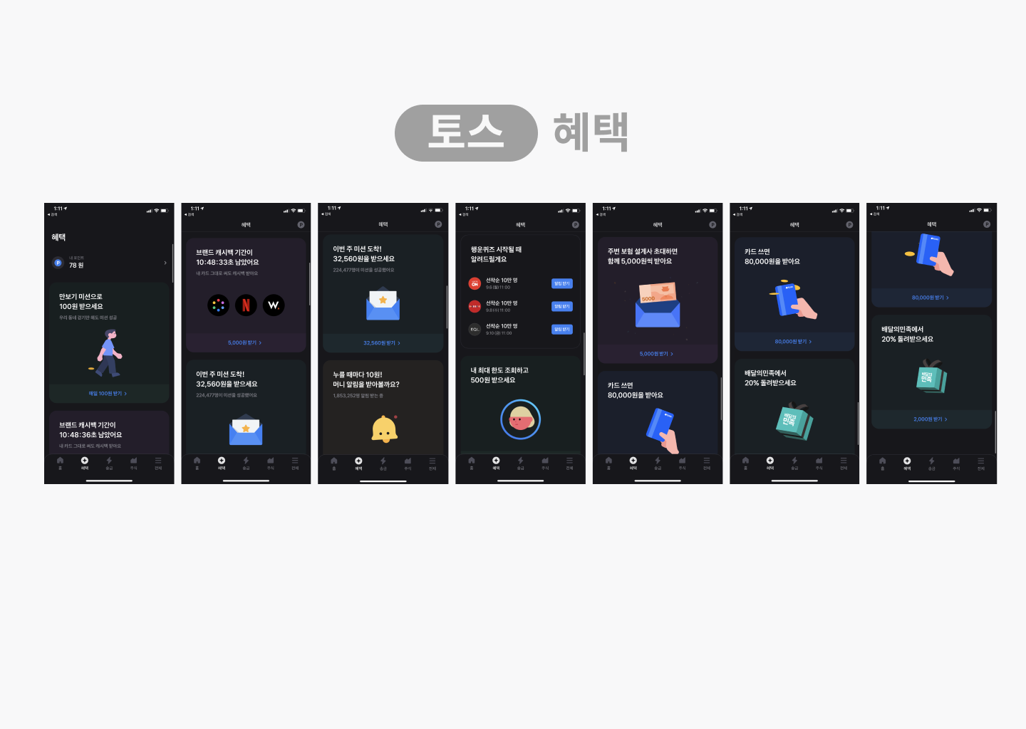 토스의 혜택화면입니다.